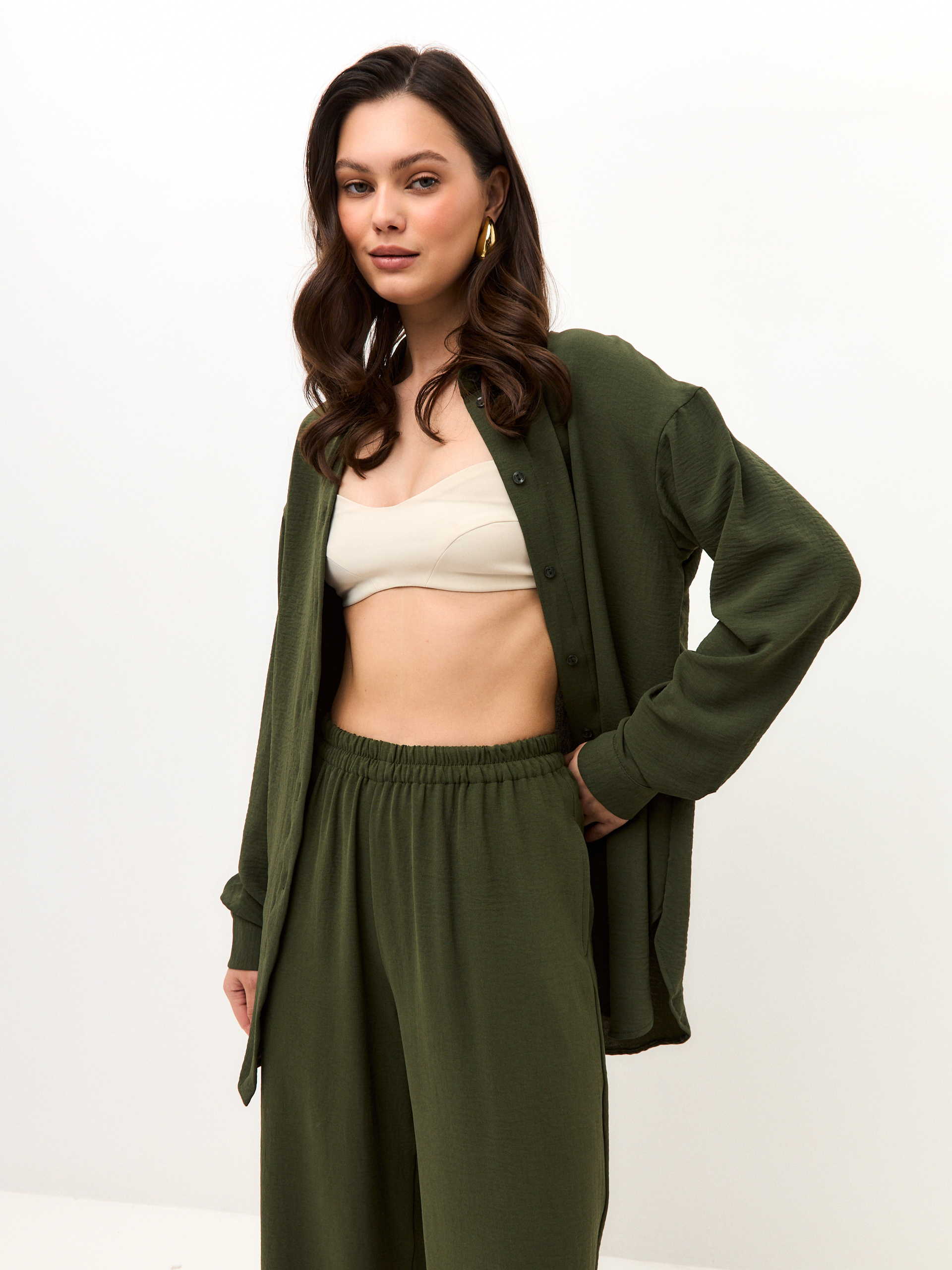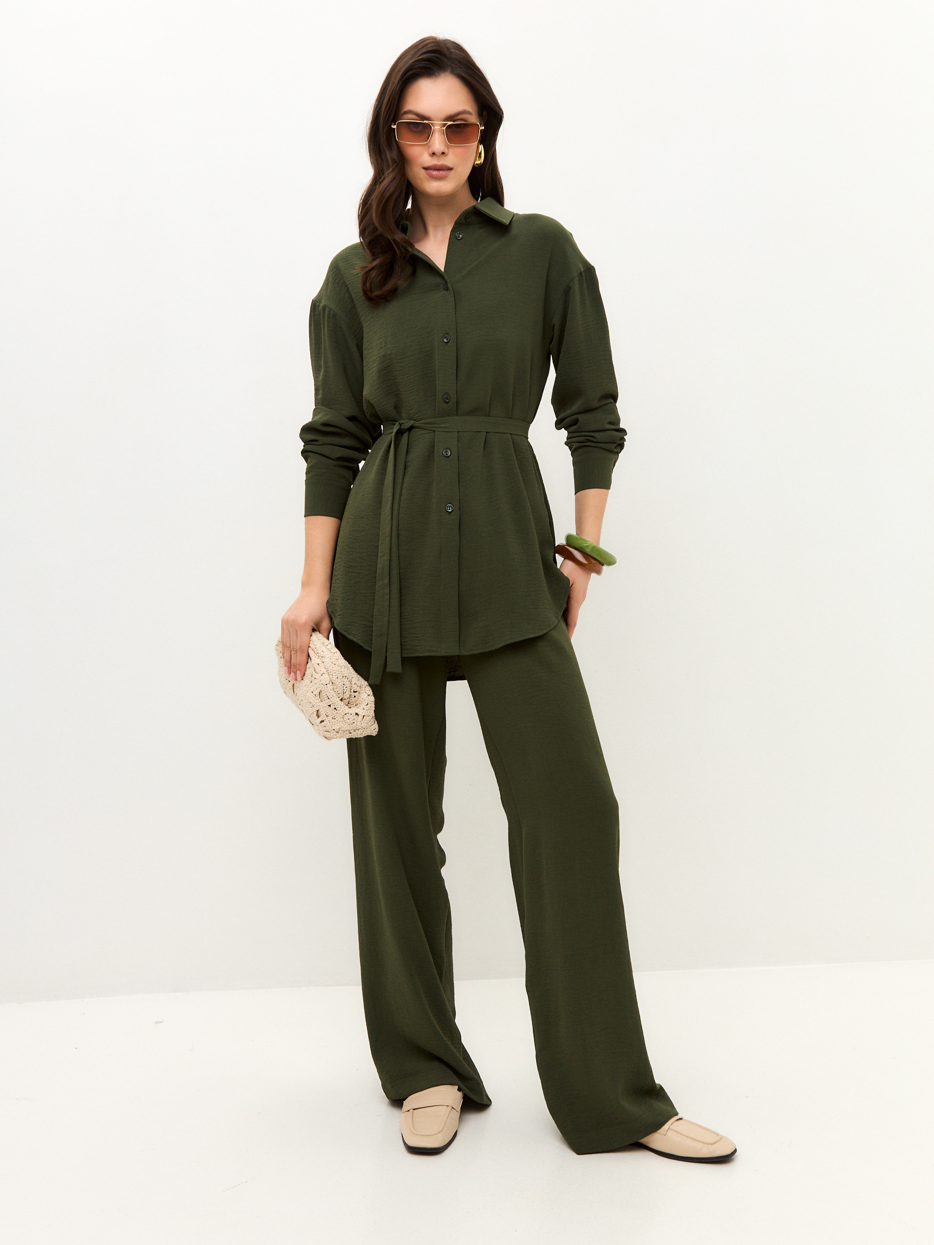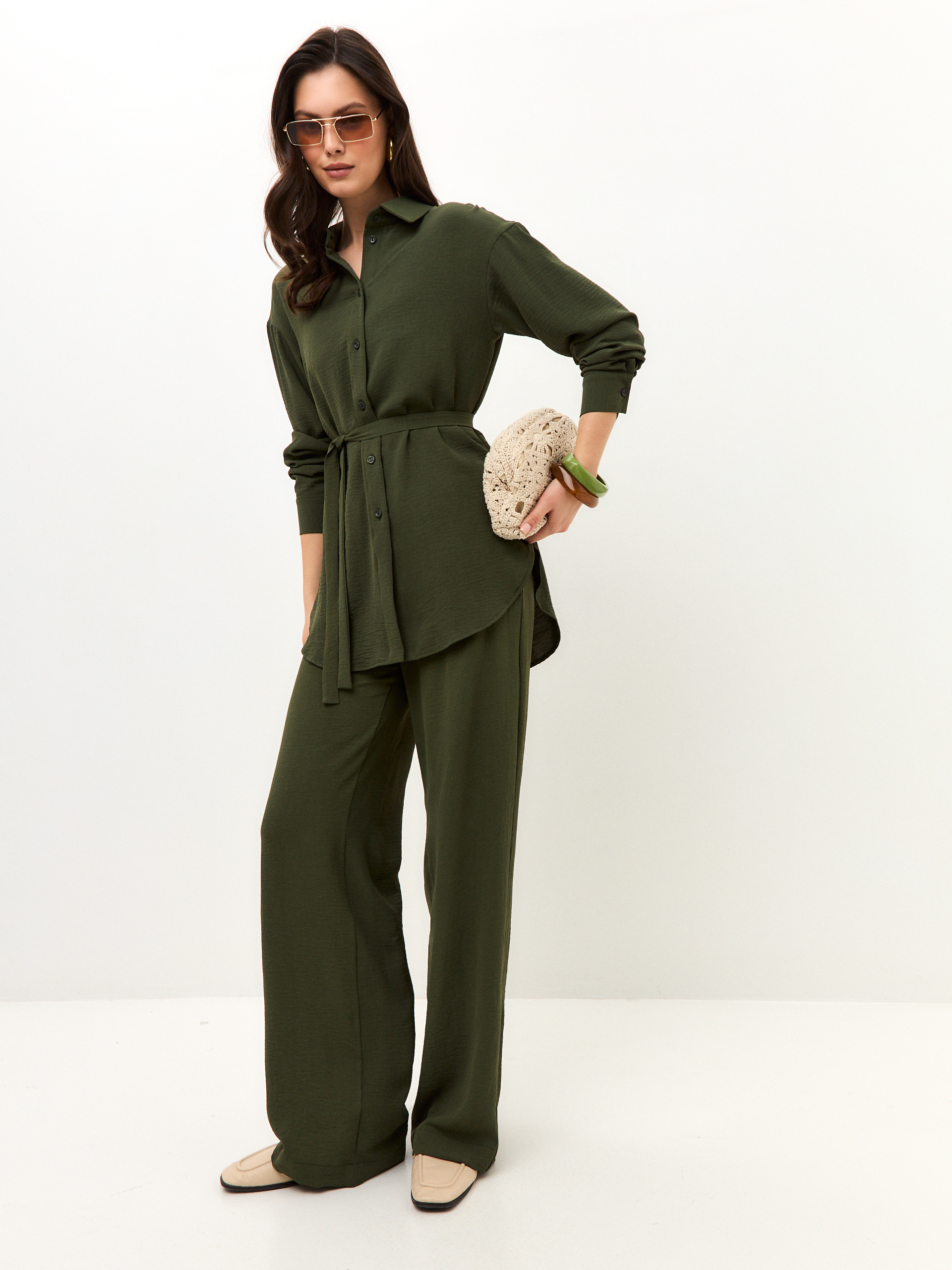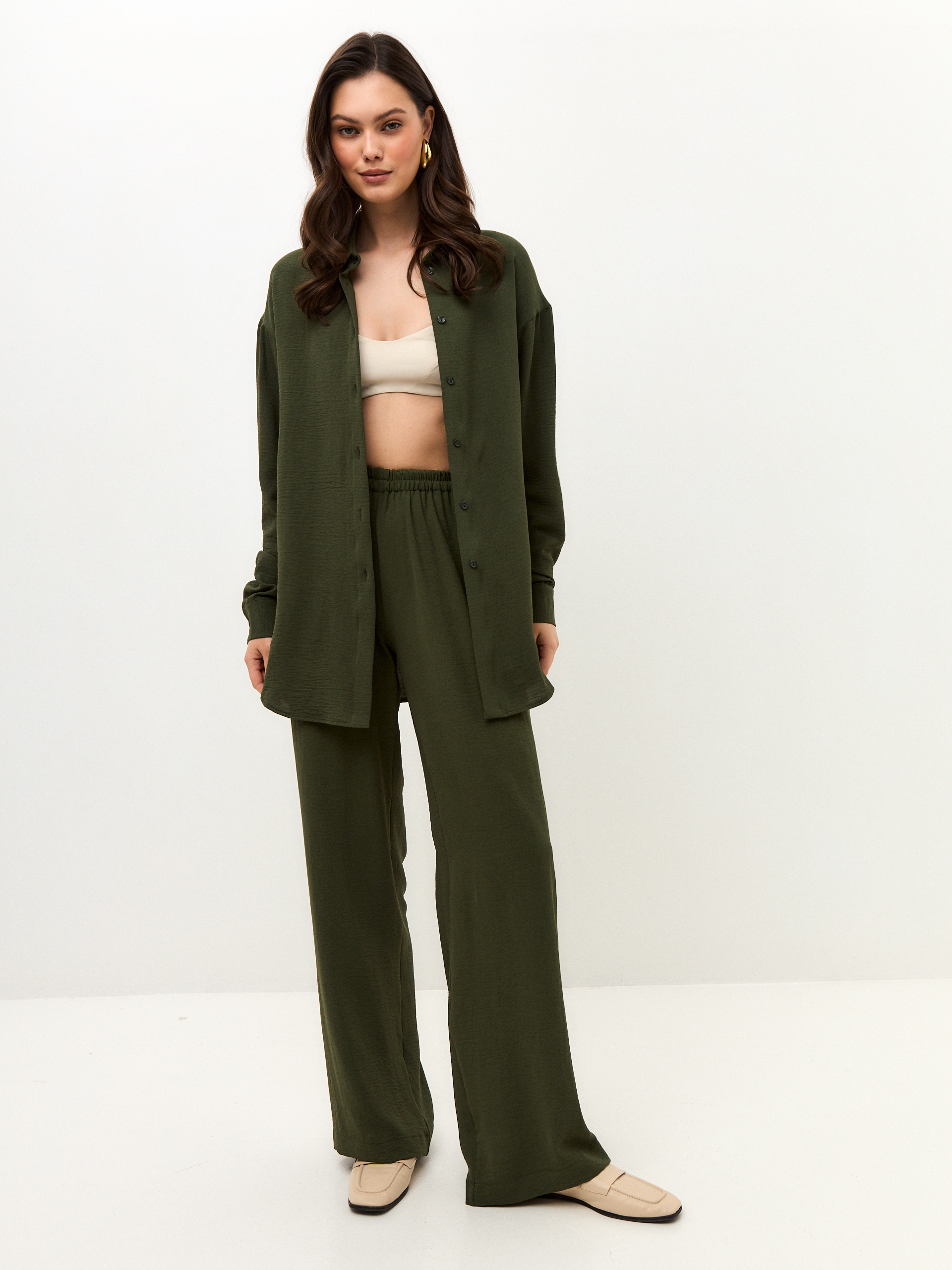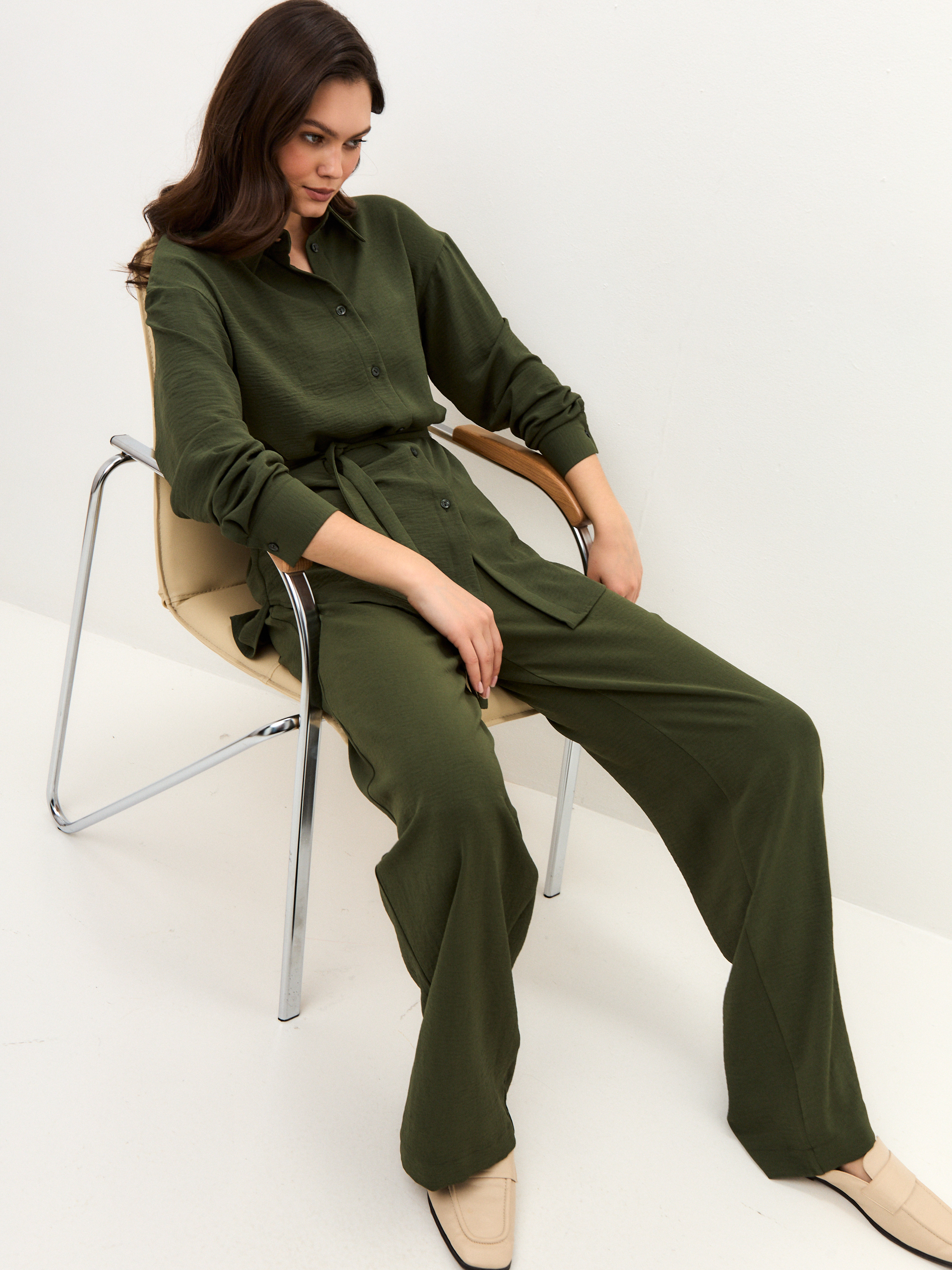 Брюки для тех, кто ценит и комфорт, и цвет. Тёмно-зелёный оттенок делает образ спокойным и благородным. Модель на мягкой резинке, со свободной посадкой и удобными карманами. Идеальный вариант на высокий рост, когда больше не нужно искать компромиссы.