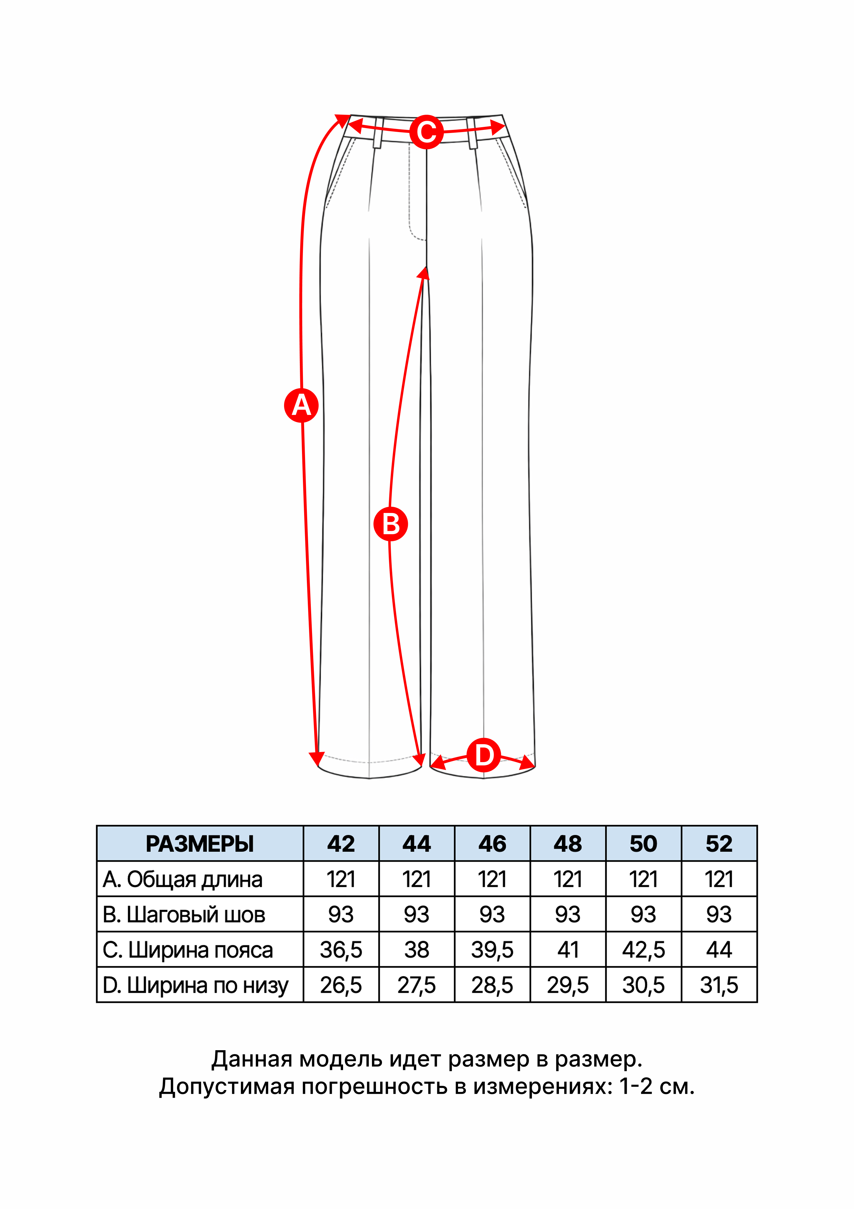 Длина брюк — 122 см.